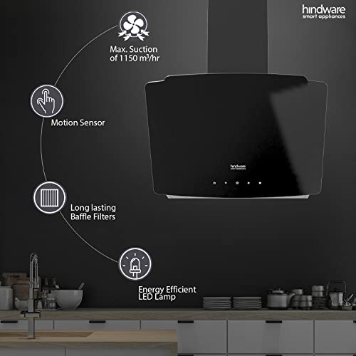 Faber 60 cm 1095 m³/hr curved glass Kitchen Chimney (HOOD FEEL 3D T2S2 BK TC LTW 60, Baffle Filter, Touch Control, Black)