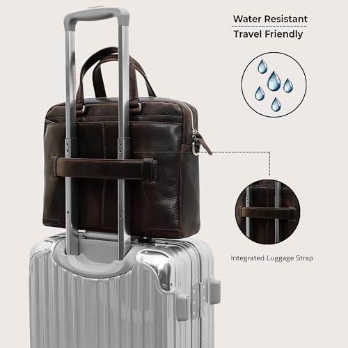 seyfocnia Men's Business Travel Briefcase Leather Handmade Messenger Bags Laptop Bag