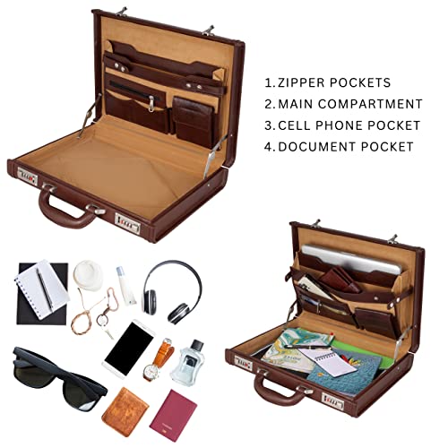Kuber Industries Soft Leather Laptop Briefcase Bag Shoulder Messenger Bag Office Bag for Travel/Business/School/Men/Women (Brown)