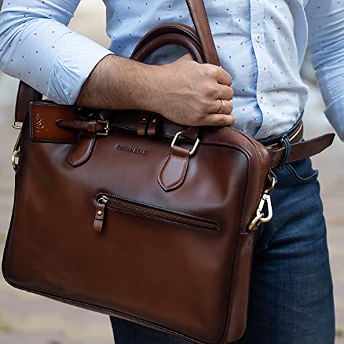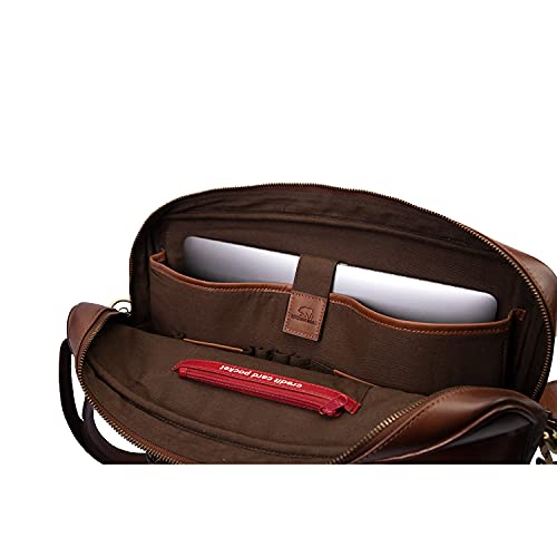 seyfocnia Men's Business Travel Briefcase Leather Handmade Messenger Bags Laptop Bag