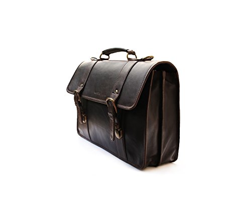 BRAND LEATHER Genuine Leather Laptop Bag for Men - Office Bag - Fits Up to 16-inch Laptop/MacBook - Shoulder Bag/Hand Bag - Laptop Messenger Bag with Trolley Straps - 1 Year Warranty