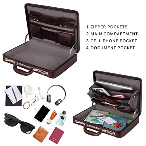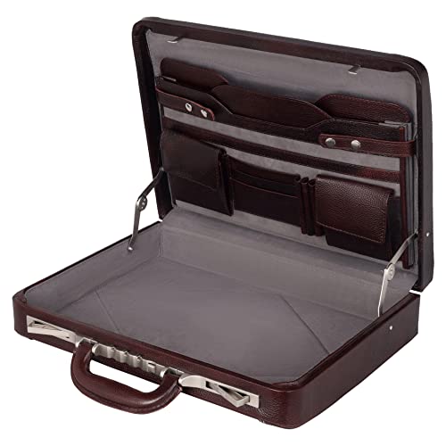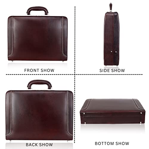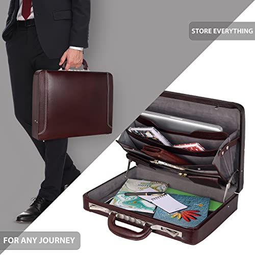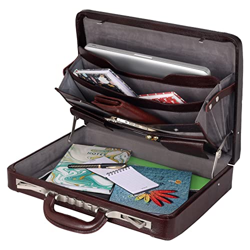 RICHSIGN LEATHER ACCESSORIES 18 Inch Expandable Men's Leather Briefcases Office Bag with Golden Ameit Lock