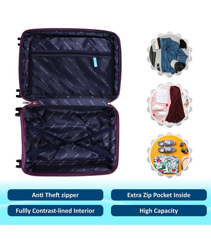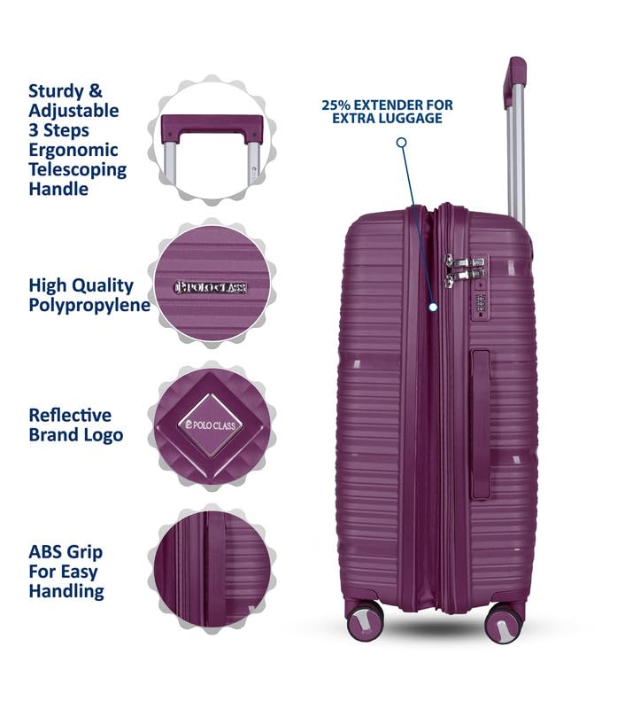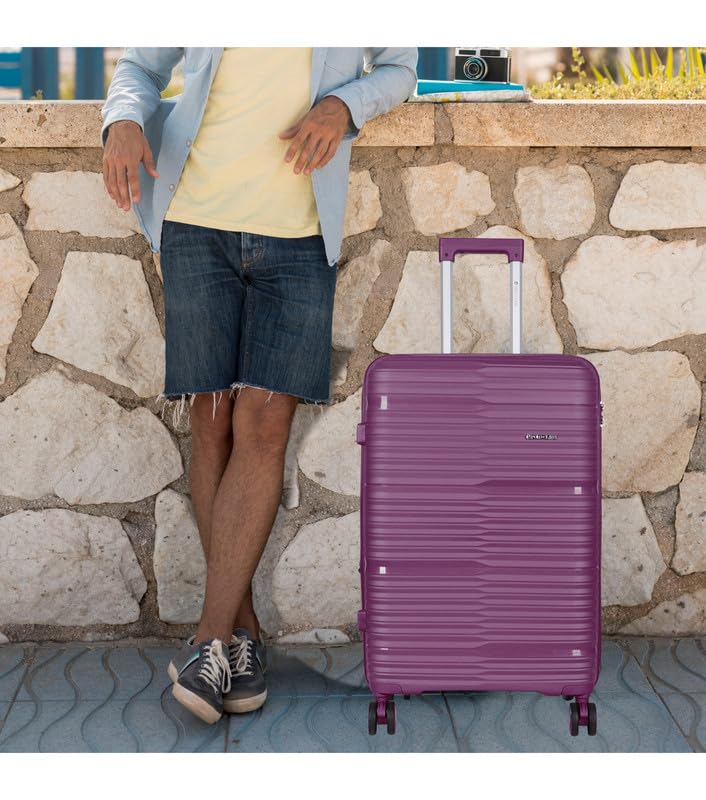 Luggero Star 55, 69 and 77 Cms Small, Medium and Large Polycarbonate (PC) Hard Sided 8 Wheeler Spinner Wheels 360 Degree Wheeling System Luggage Sets of 3 (Purple)
