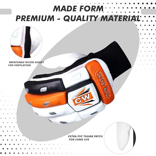 Snaga 20-20 Cricket Gloves, Protective Batting Gloves with Padded Fingers (Black, Youth)