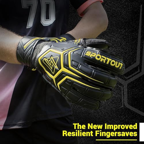 Nema NM Adult Goalkeeper Football Gloves, with Finger Guard - Black and Yellow - Size 8