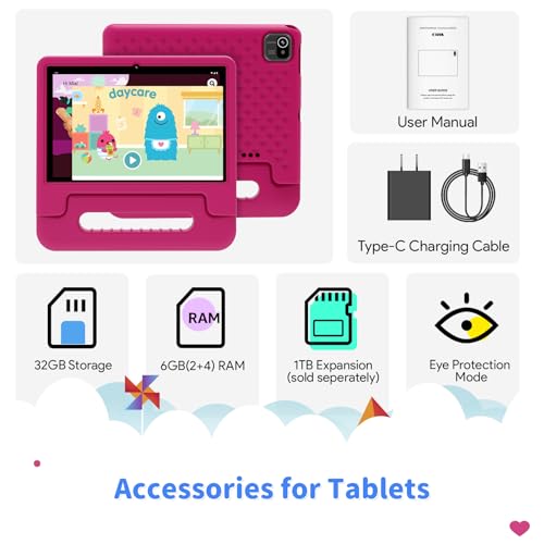CHEOTIME Kids Tablet, 10.1 Inch Kids Educational Tablet with 5G WiFi wifi6 64gb Storage Android 14 Dual Camera 6000mAh Sky (US Plug)