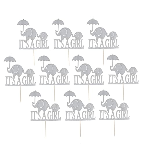 HEAVENGLOW 10xGlitter Paper Elephant Cake Topper Baby Shower Silver Girl